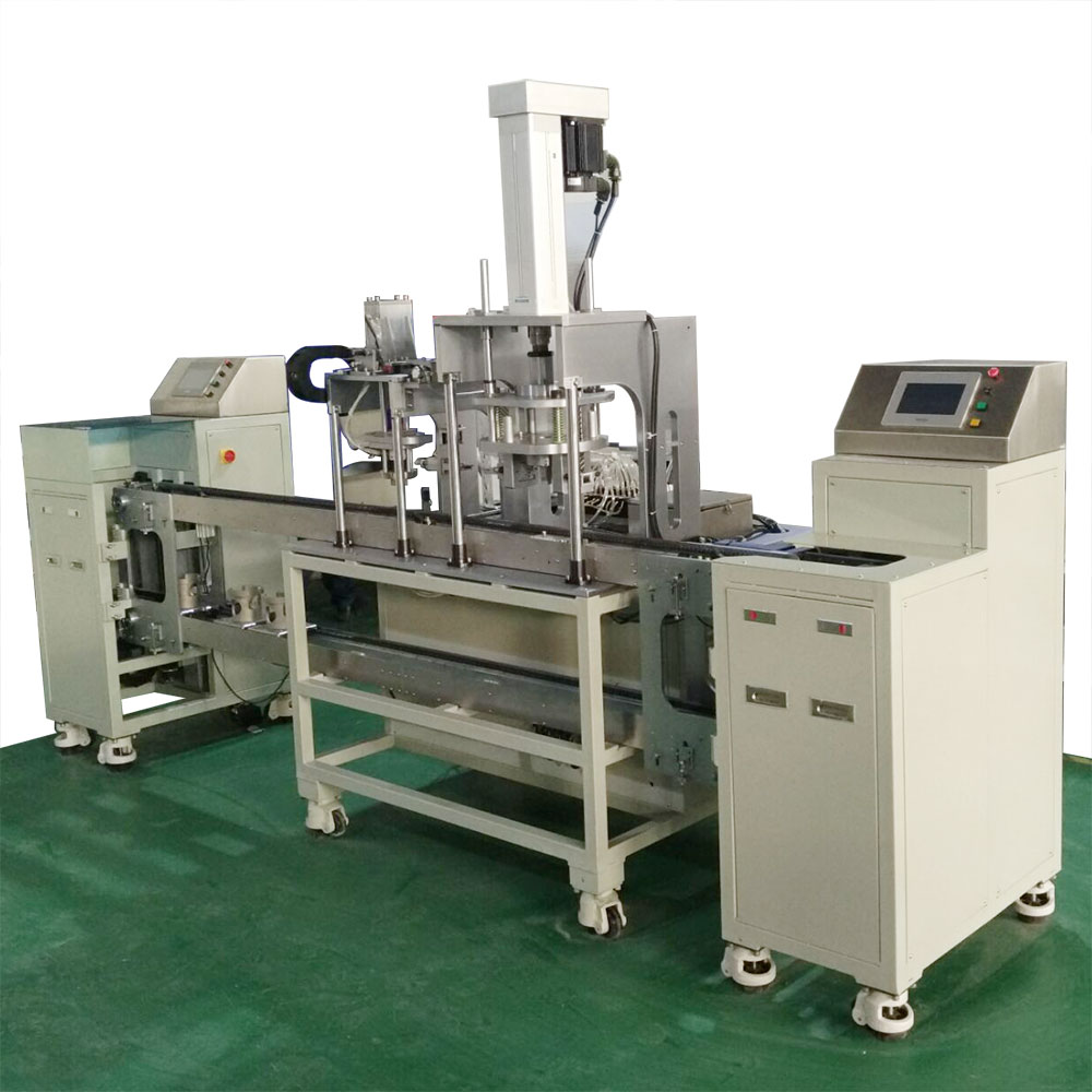 設備功用:電機行業定子自動裝入機殼并鉚壓機殼。 功能特點: 1,雙層鏈板線,兩頭獨立升降機,可根據需要靈活拓展線體長度; 2,自動定位定子安裝角度確保安裝精確; 3,電缸鉚壓,鉚壓尺寸可自由設定,方便多產品通用; 4,采用進口PLC、觸摸屏等高性能電氣元件,控制可靠,參數設置方便。 主要參數: 電源:AC380V±10% 氣源:0.4-0.7MPa 節拍: 10秒 ??